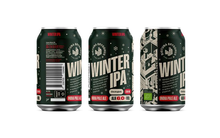 Till vintersäsongen släpps traditionsenligt också Sigtuna Brygghus Winter IPA. En ekologisk och humlearomatisk IPA som bryggts med en dos rostad malt för att passa till julens festsmaker. Den kommer på klimatsmart burk, ett modernt förpackningsslag bland hantverksöl som nu börjat leta sig in även på julens väldukade bord.