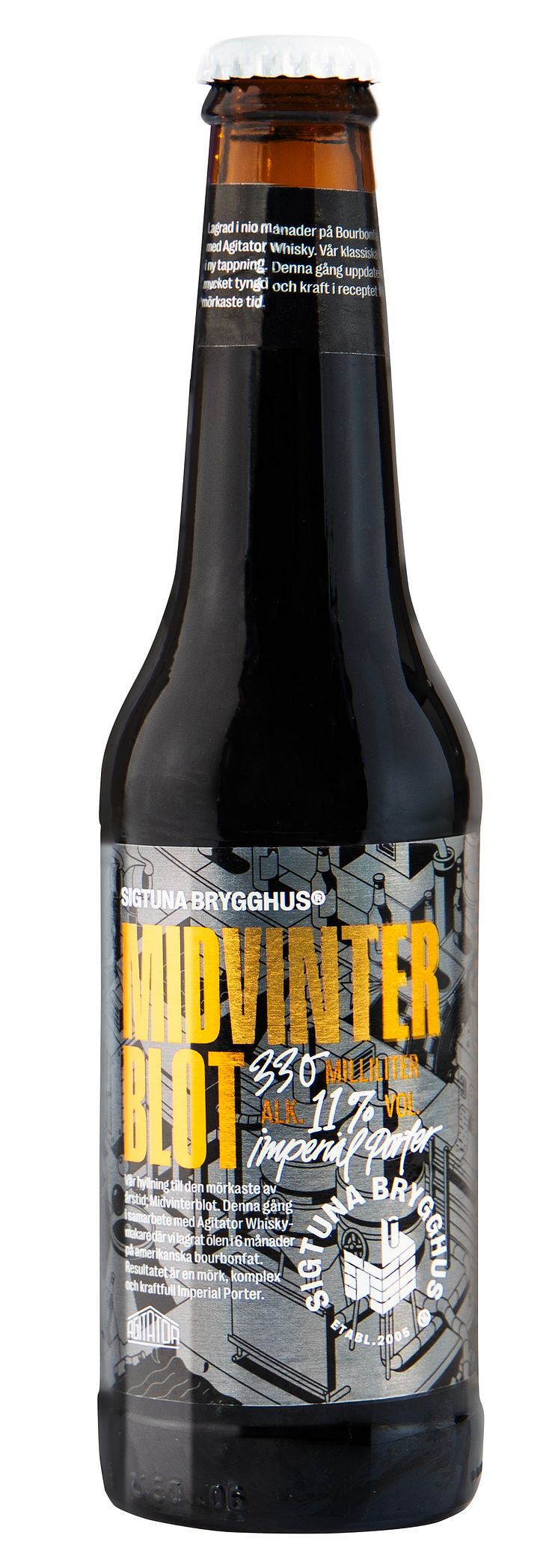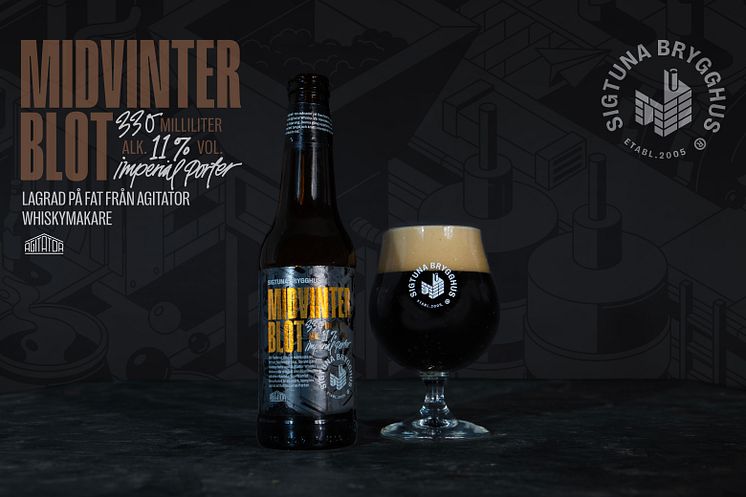 Sigtuna Brygghus har en förkärlek för riktigt mörk öl och traditionsenligt släpper bryggeriet årligen en öl lagom till den mörkare årstiden. Detta år har Midvinterblot mognat på whiskyfat, som från början har innehållit amerikansk bourbon och senare Agitator Single Malt Whisky.