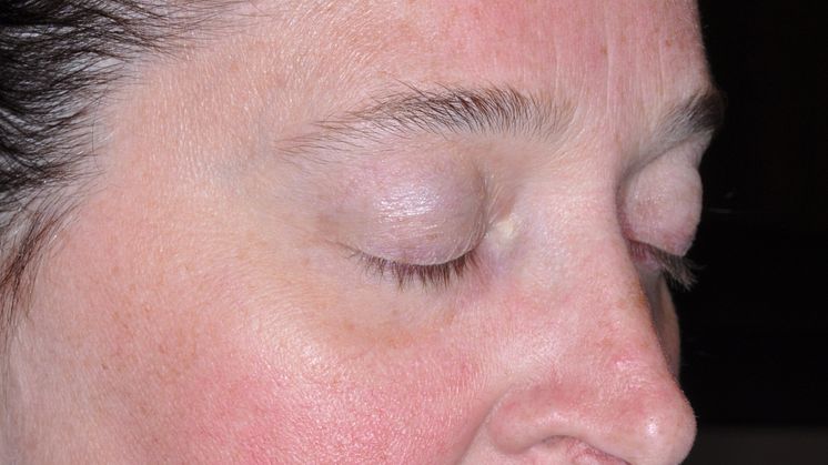 Patient 30 minuter efter behandling med Mirvaso (brimonidin)