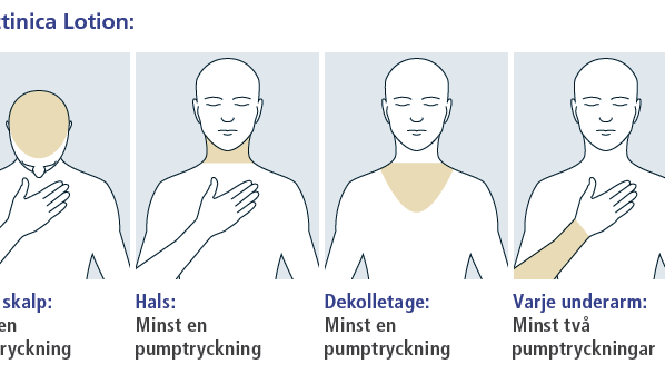 Mängden lotion som används är viktig för att få så bra skydd som möjligt. För att underlätta att få rätt mängd kommer Actinica Lotion i en doseringspump som gör att användaren får exakt rätt lotion för olika hudområden.