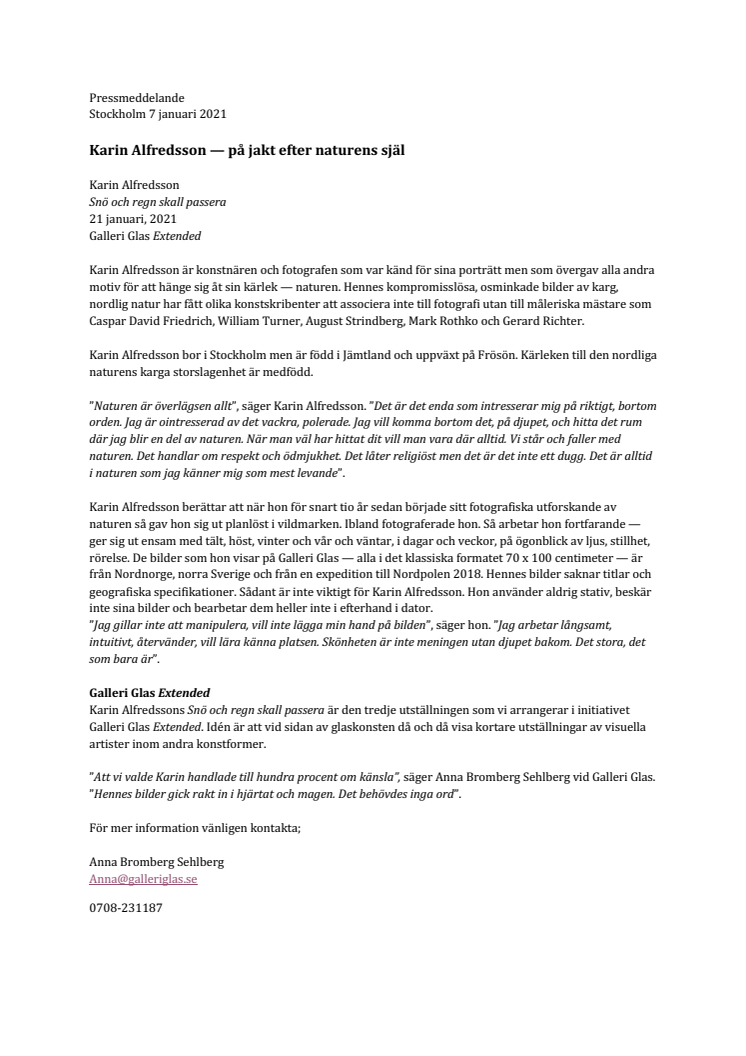Karin Alfredsson är konstnären och fotografen som var känd för sina porträtt men som övergav alla andra motiv för att hänge sig åt sin kärlek — naturen.