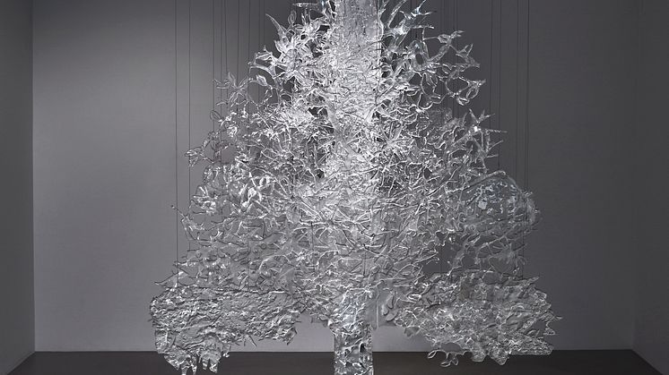 Teknisk beskrivning: Ugnsformat glas i flera lager och metalltråd. Verket består av 46 enskilda delar som monteras i ett mönster och bildar trädet, delarna fästs i metalltråd från ett nät. Verket är gjort speciellt till Stockholm, staden.