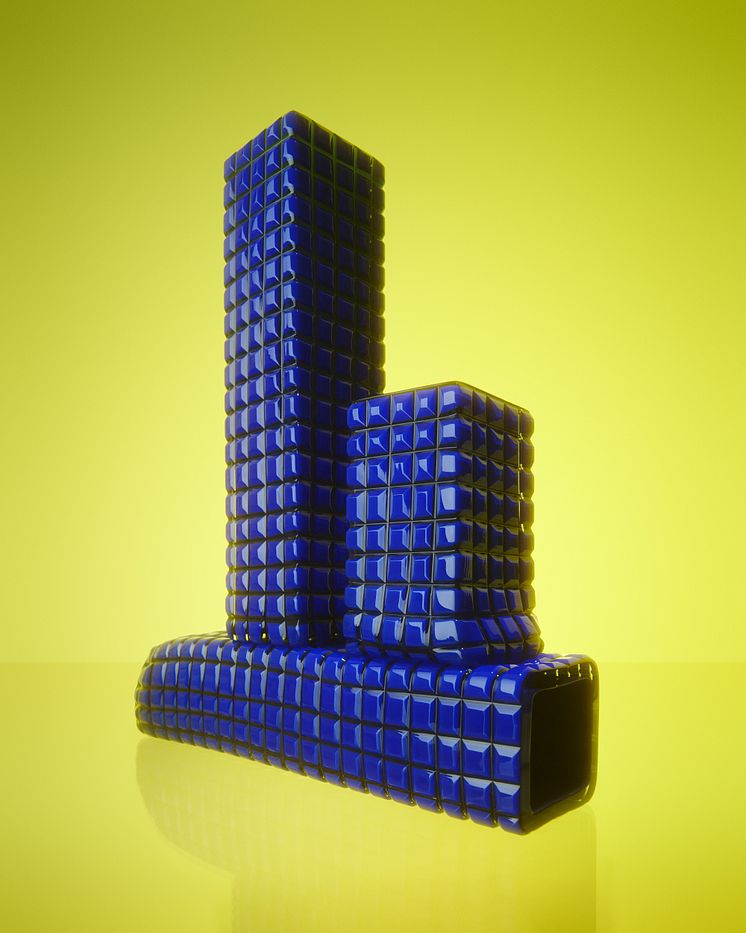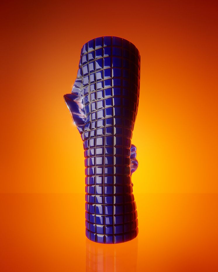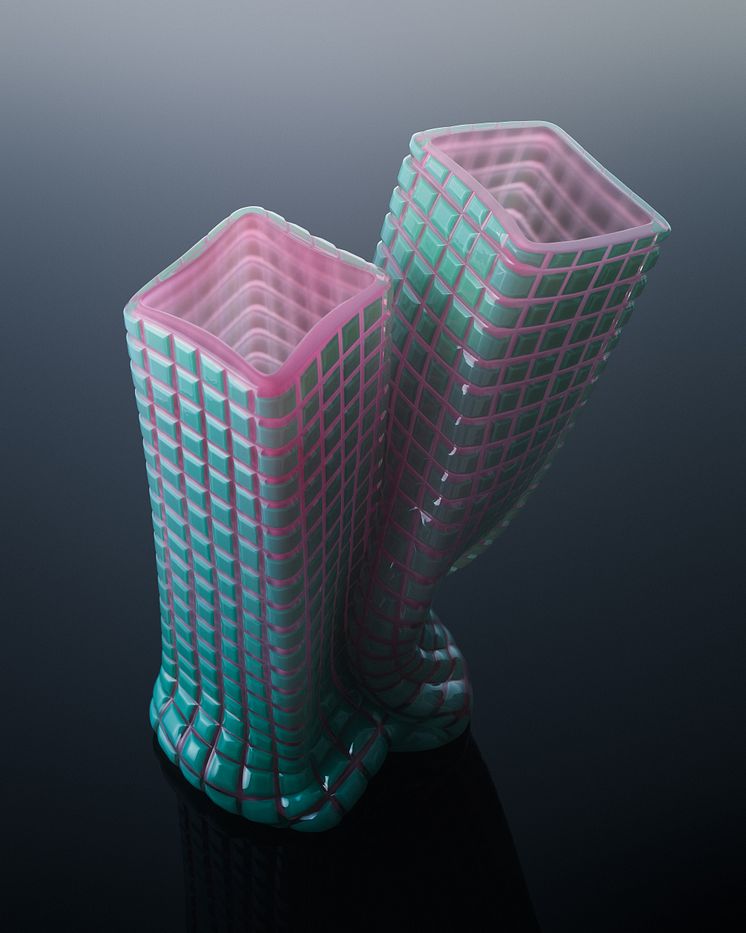 Nytt för Simon Klenell är att konstnären — själv skicklig glasblåsare och medgrundare av studiohyttan Sthlm Glas i Gustavsberg — under två års tid har samarbetat med mästerblåsarna i Kosta Bodas berömda Verkstad 12 och sliparen Andreas Andersson. Samarbetet inleddes sedan Klenell 2021 tilldelats det prestigefulla Ulrica Hydman Vallien-stipendiet.