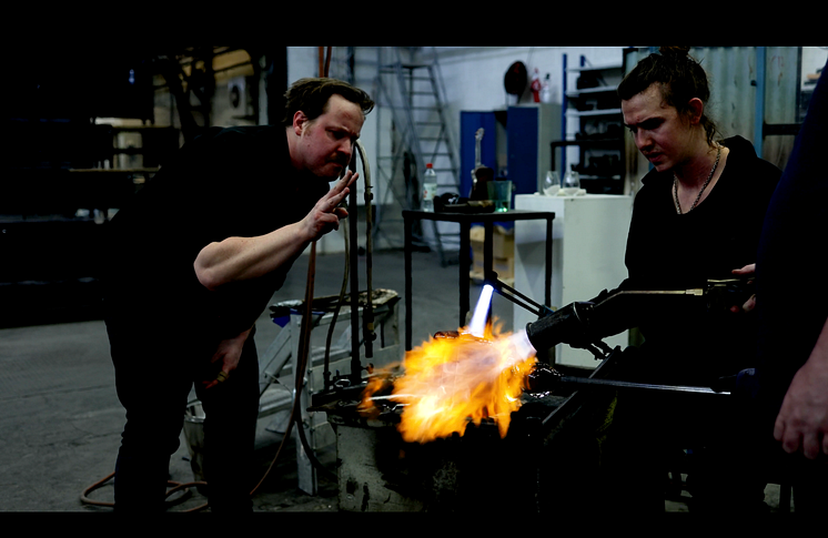 ”Samarbetet med blåsarna har inspirerat mig att vara mer brutal i den varma hanteringen, verkligen utforska de krafterna, inte vara så finkänslig,” säger Simon Klenell. ”Det krävs en större tydlighet när jag översätter min egen kunskap till andras händer. Jag har en väldig respekt för konstindustrins historia, hur den har påverkat mig. Det har varit ett privilegium att verkligen få utforska platsen, jobba i källmaterialet och löpa hela vägen ut med alla möjligheter som lagarbetet och resurserna ger.”