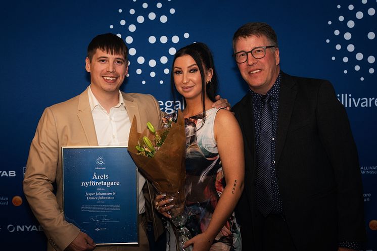 Årets nyföretagare Jesper Johansson och Denice Johansson från GVE Padel tillsammans med Roger Hansson, vd Gällivare Näringsliv AB