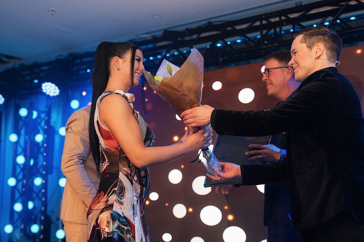 Denice Johansson, GVE Padel tar emot pris som Årets nyföretagare.