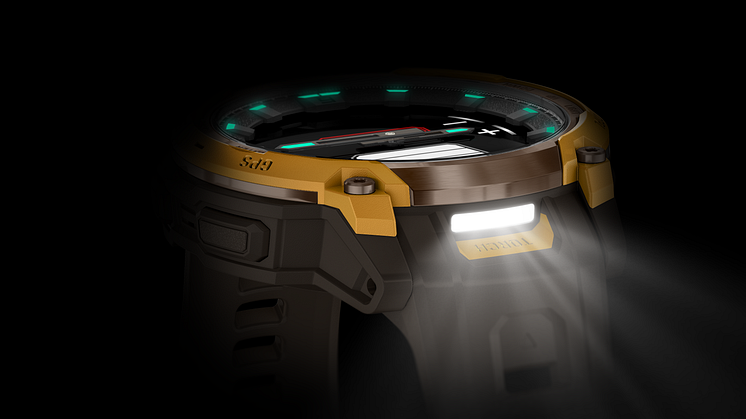 - Klockan är byggd enligt MIL-STD-810 för motståndskraft mot temperatur och stötar och har en metallring med dubbla lager, vilket gör den tillräckligt stark för att klara de tuffaste äventyren.