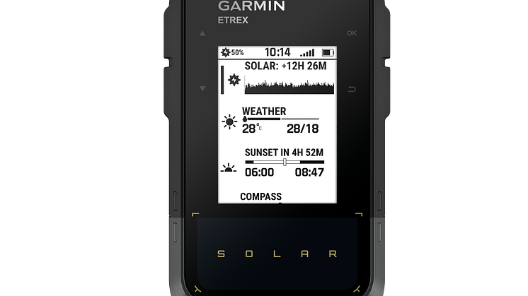 “I över två decennier har vår ikoniska eTrex-serie varit väl känd för sina banbrytande funktioner och varit oerhört populär hos våra kunder. Att addera obegränsad batteritid med teknologi för solenergi är bara det senaste exemplet på den innovation vi strävar efter att uppnå i alla våra Outdoor-produkter. Oavsett om du ska ut på en kortare vandring eller lever ditt liv off grid är eTrex Solar den perfekta följeslagaren på ditt nästa äventyr.” –Dan Bartel, global försäljningschef på Garmin