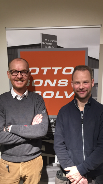 Ottossons Golv AB hade störst ökning av den insamlade mängden installationsspill jämfört med 2015. Med det tog de hem 2:a priset i Golvbranschens tävling. På bilden: VD Fredrik Ottosson och Lars-Göran Carlsson, lageransvarig.