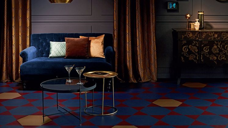 Bjud upp till form och färg. Starka färger och maxade mönster syns också på trendhimlen. Ett exempel är vinylgolvet iD Mixonomi, som har flera härliga kombinationer för den som vågar bjuda hem rejält med form och färg. Finns i olika geometriska former och många kulörer, så det går att skapa precis det golv man drömmer om. www.tarkett.se
