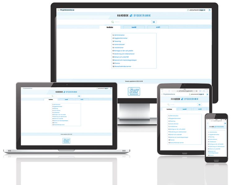 Nu lanseras nätversionen av Handbok Byggkeramik. Det betyder att ett omfattande material på närmare 500 sidor om kakel och klinker i både torra och våta utrymmen blir enkelt tillgängligt och sökbart i dator, surfplatta och smartphone.