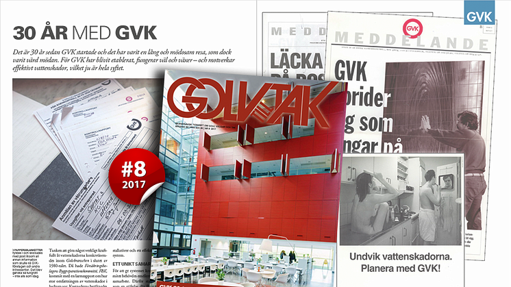 Ja, till och med den berömda nakenchocksannonsen finns med i detta fullmatade nummer av Golv till Tak när GVK fyller 30 år! Läs hela historien om hur GVK gått från att vara en idé på papper till att bli en självklarhet för konsumenter, byggaktörer, mäklare och försäkringsbolag. Milstolpar i utvecklingen mot vattensäkra badrum och pionjärminnen från tre profiler som varit med hela vägen är en del av innehållet, liksom hur GVK möter framtiden med digitala kurser. Lite annan läsning får också plats, till exempel hur golvkonstruktioner kan skapa skön värme i huset.