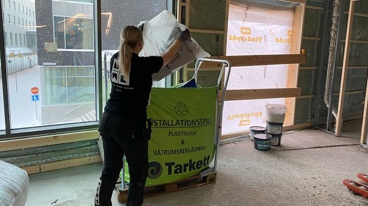 Markus Johansson säger att det inte är något extrajobb att återvinna spill. Det är kanske enklare i stunden att slänga allt i samma hög men sedan måste avfallet ändå sorteras, menar han. Med Big bag-påsarna från Tarkett/GBR Golvåtervinning går återvinningen smidigt och lätt.