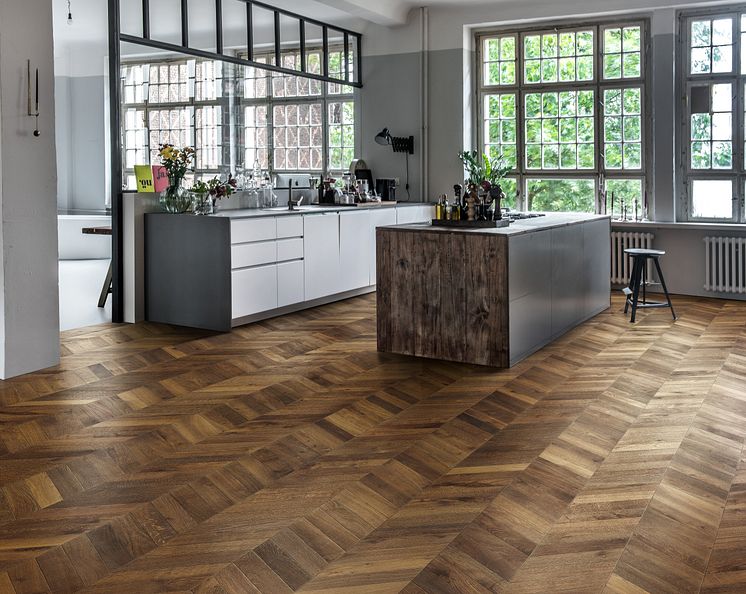 • Golvtrender 2019; Chevron i ek, dark brown, Kährs
