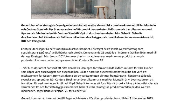Geberit Group är marknadsledande i Europa inom sanitetsprodukter och firar 150 år under 2024. Geberit har en stark lokal närvaro i de flesta europeiska länder och kan därmed erbjuda unika mervärden inom sanitetsteknik och badrumskeramik. Tillverkningskapaciteten omfattar 26 produktionsanläggningar, varav fyra är belägna utanför Europa. Koncernen har sitt huvudkontor i Rapperswil-Jona, Schweiz. Med cirka 11 000 anställda i ett 50-tal länder genererade Geberit en nettoomsättning på cirka 3,1 miljarder CHF under 2023. Geberit är noterade på börsen SIX Swiss Exchange och är en del av SMI (Swiss Market Index) sedan 2012.