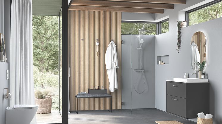 • 2024_Bathroom Acanto_with Geberit niche storage box_CleanLine50 black chrome_Geberit ONE partition wall glass 150cm_1_Original