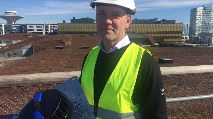 - Pluvia är så effektivt att halva rördiametern, klarar dubbla mängden regnvatten jämfört med ett mer traditionellt system, säger Jonas Elfborg, produktchef på Geberit.