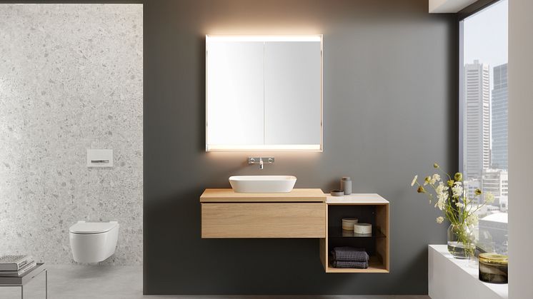 Ett integrerat belysningskoncept vid namn ComfortLight är en av höjdpunkterna i seriens spegelskåp. Här harmoniserar fyra olika ljuskällor med varandra som säkerställer en autentisk spegelbild utan att kasta skuggor. ComfortLight skapar ett naturligt ljus, från klart och uppiggande morgonljus till middagssol, harmonisk solnedgång och stämningsfullt levande ljus. Ljusstyrkan och stämningen den ger anpassar sig efter badrumsanvändarens behov och kroppsklocka samt är dimbar. Belysningskonceptet är ett typiskt exempel på när ’’Design Meets Function’’ och med det nya Geberit ComfortLight-systemet kan alla ljusskällor i rummet kopplas samman för att styras från en central punkt eller via Geberit Home App.