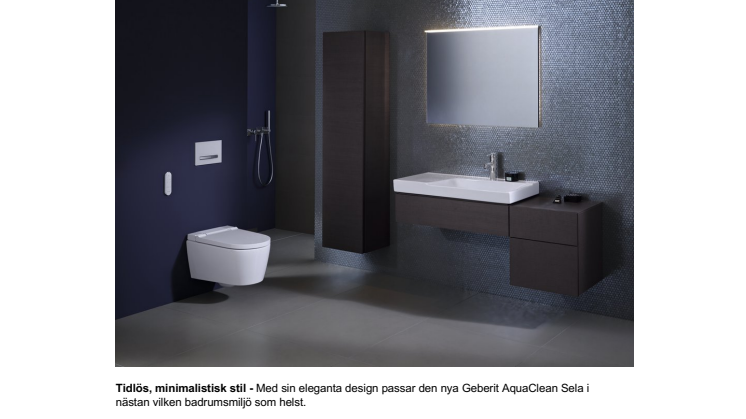 Skapad av designern Christoph Behling, är Geberit AquaClean Sela det senaste tillskottet i Geberits AquaClean-sortiment. Med sin tidlösa, minimalistiska design är den en elegant duschtoalett som passar in i nästan vilken badrumsmiljö som helst. Geberit AquaClean Sela har en innovativ teknik som ger en varsam intim rengöring och en ökad känsla av personligt välbefinnande.