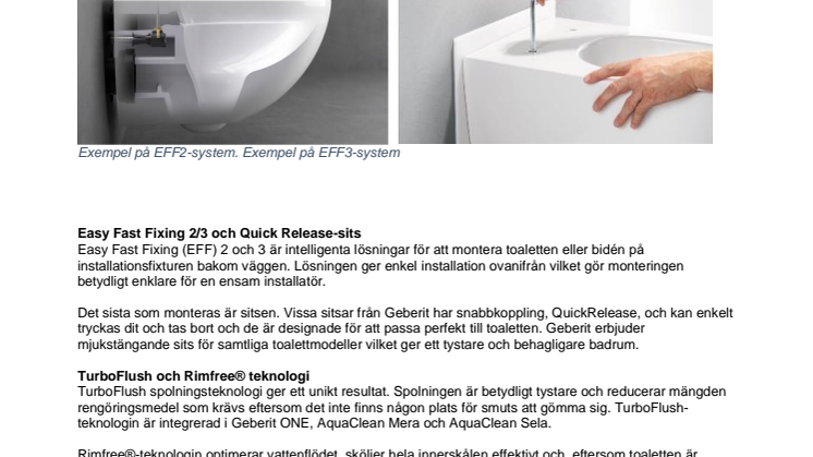 De nya toaletterna passar perfekt med Geberit Duofix inbyggnadsfixturer.