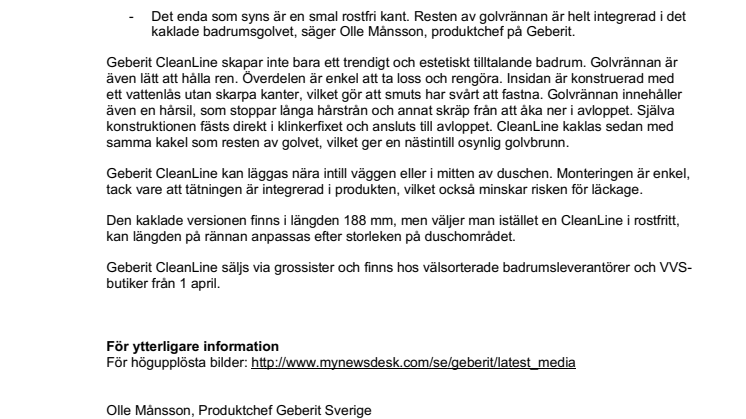 Geberit CleanLine säljs via grossister och finns hos välsorterade badrumsleverantörer och VVS-butiker från 1 april.