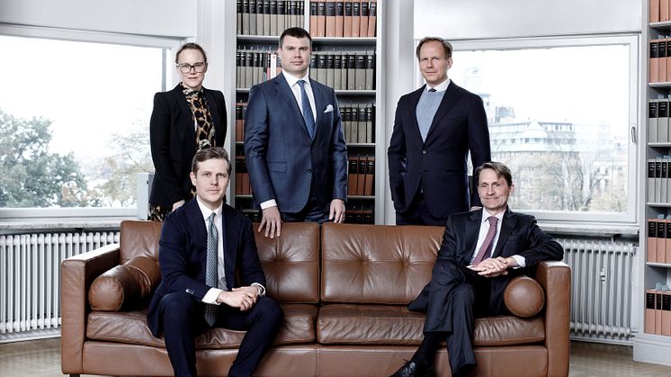 Gernandt & Danielssons styrelse. Övre raden: Caroline Jägenstedt Wikman, Mikael Borg och Carl Westerberg. Nedre raden: Daniel Waerme och Manfred Löfvenhaft.