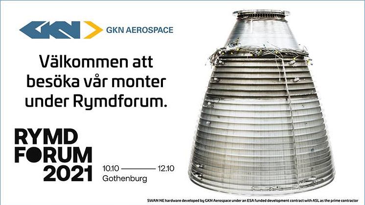Välkommen att besöka GKN Aerospace monter på Rymdforum 2021 den 11-12 oktober på Chalmers Konferens i Göteborg.