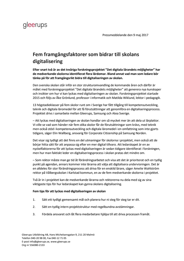 Efter snart två år av det treåriga forskningsprojektet ”Det digitala lärandets möjligheter” har de medverkande skolorna identifierat flera lärdomar. Bland annat vad man som ledare bör tänka på för att framgångsrikt bidra till digitaliseringen av skolan.