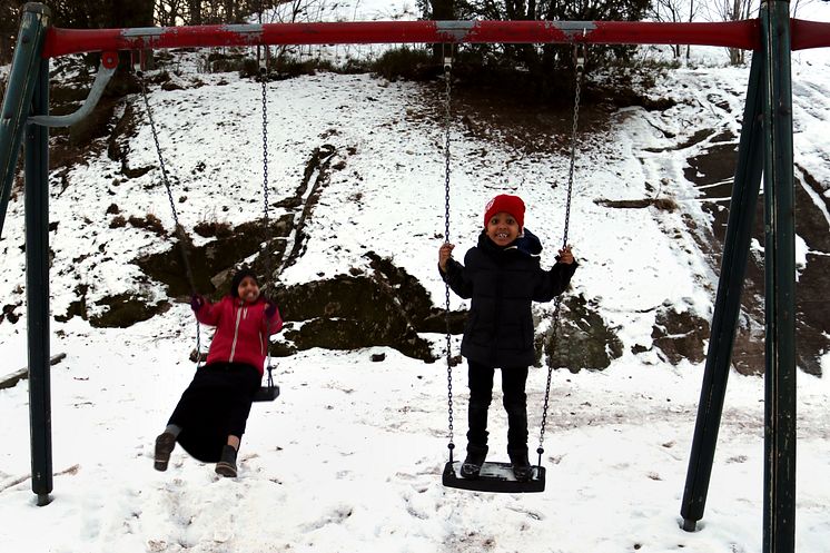 Mona Hussein är en samtida ung fotograf, som i foton nytagna för utställningen visar hur dagens barn och unga använder och upplever området. En del saker är samma som på Jensens tid, medan annat förändrats och tagit nya former.