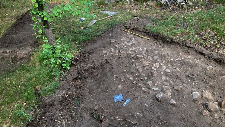 Närbild av en stenpackning som troligen varit en rituell yta.
