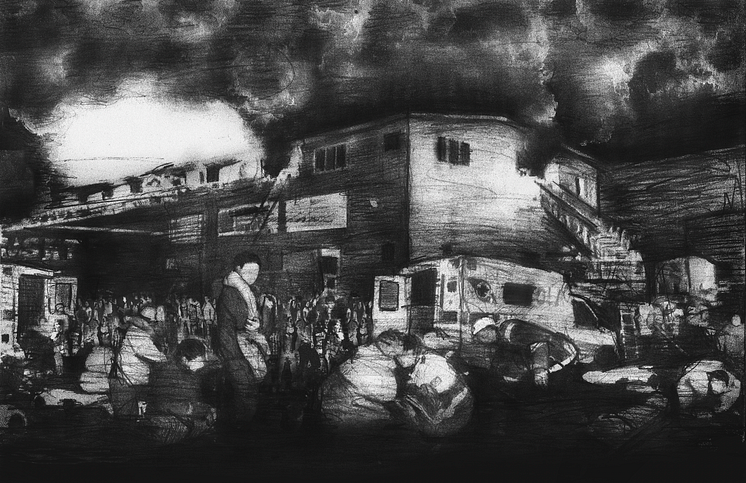 Stillbild ur filmen "Diskoteksbranden 1998". Illustration: Mikel Nilsson