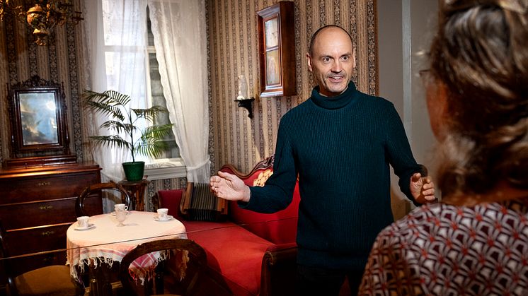 • Ylva Berglund och Håkan Strömberg under inspelningen av "Hur hamnade vi här? - tio filmer om Göteborgs historia". Foto: Emma Backman