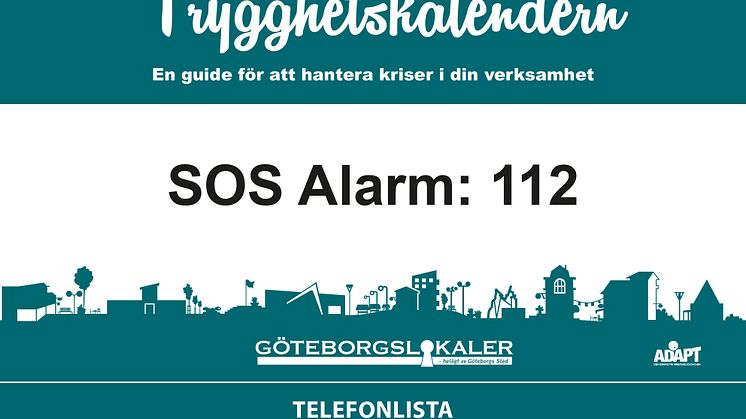 Den innehåller tretton fullmatade flikar med viktig information om hur man hanterar allt från brand till rån och krishantering. Allt med syftet att utveckla säkerheten i hyresgästernas verksamhet. Nu är GöteborgsLokalers nya Trygghetskalender klar.