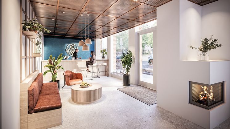 Fastigheten kallas Engelbrekt och husets identitet byggs utifrån värdeorden elegant, stilfullt och modernt. Vi tar med oss de fina 60-talskvaliteterna i form av teak och tegel. Till det läggs det på ett stilfullt, modernt lager genom att öppna upp och använda mer glas. Sobert och elegant.