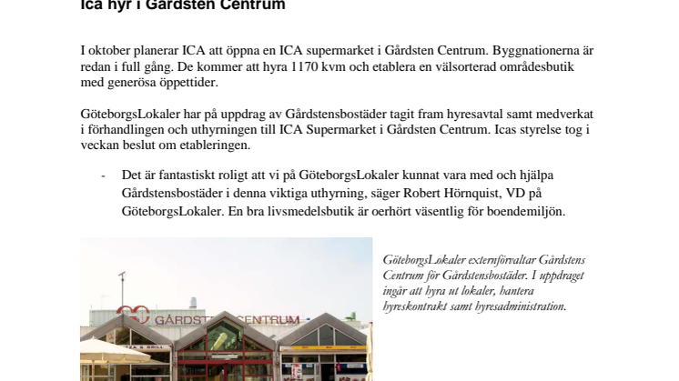 förhandlingen och uthyrningen till ICA Supermarket i Gårdsten Centrum. Icas