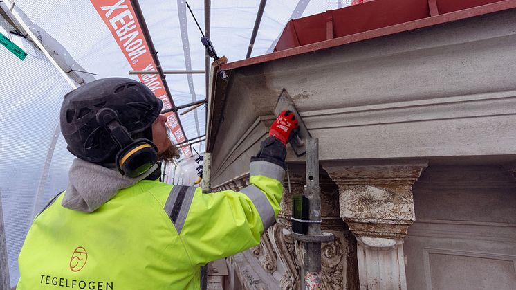 Efter att den gamla färgen tagits bort bedömdes fasaden noggrant, vilket resulterat i omfattande åtgärder, inklusive fullständig borttagning av puts. Allt arbete har utförts med stor precision för att bevara fasadens autentiska utseende.