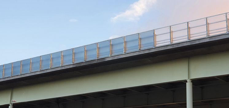Bullerskydd till Nordreälvbron levererat av gop. Material: Plexiglas Soundstop GSCC 20 mm, Akryl