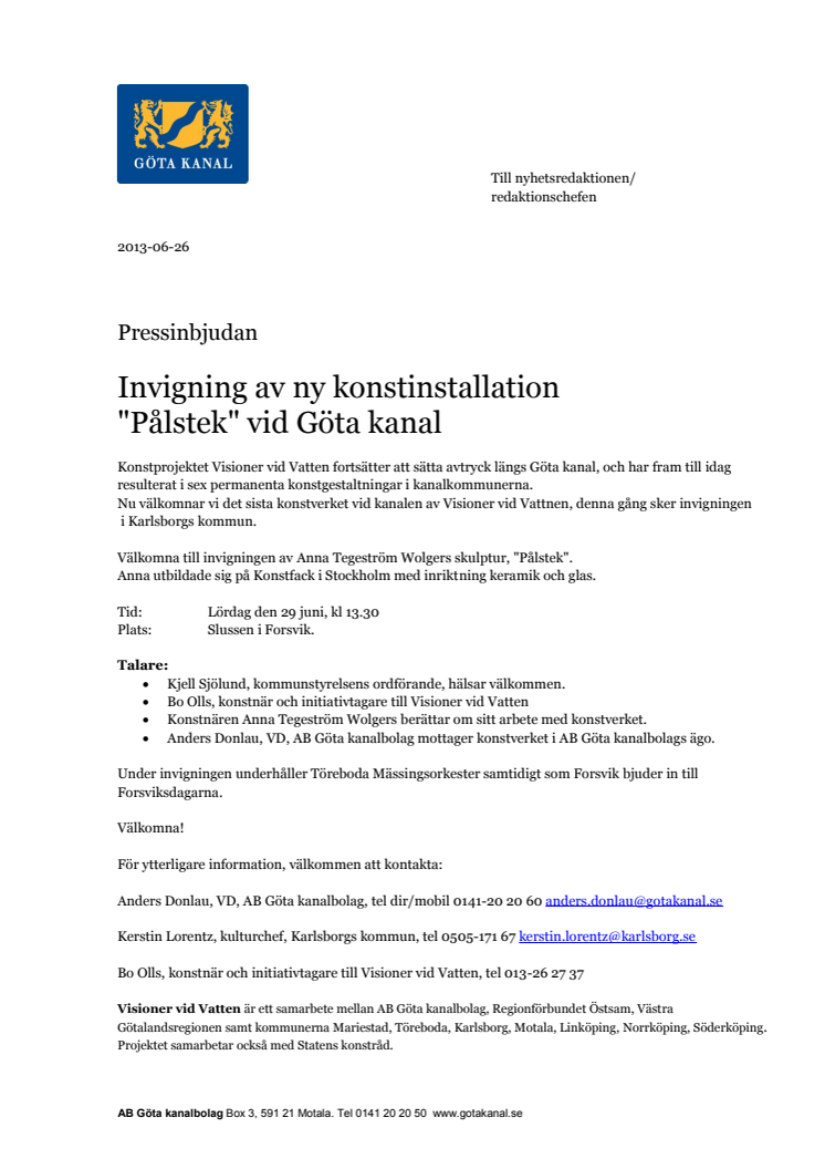 Invigning av nytt konstverk "Pålstek vid Göta kanal