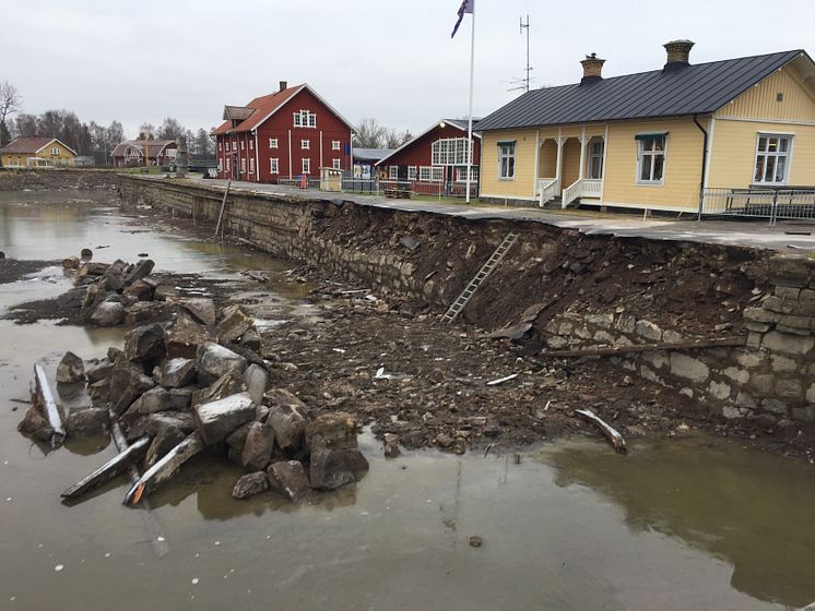 För att kunna undersöka konstruktionen revs ytterligare delar av kajen i övre hamnbassängen i Sjötorp.
