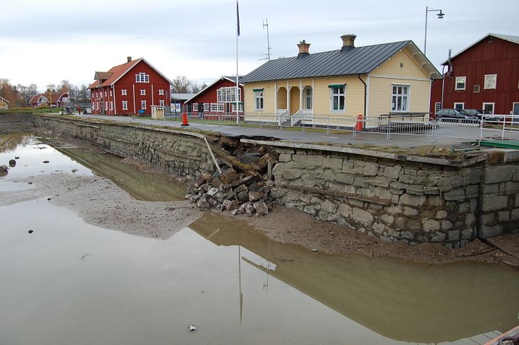 Kajen i övre gästhamnen i Sjötorp direkt efter det ras som inträffade i oktober 2016.