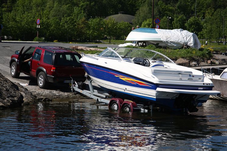 Sjösättning av trailingbåt. Foto: Sveriges och Norges kanaler
