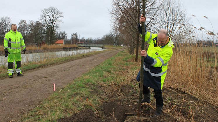 Idag planterades 50 nya träd vid en extrainsatt trädplantering längs Göta kanal på en sträcka öster om Borensberg. Träden har skänkts av ett företag från Blekinge. AB Göta kanalbolag hoppas nu att fler företag vill vara med och skänka träd och rädda Sveriges längsta trädallé.
