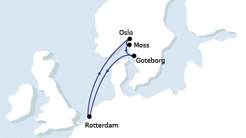 Lasten består av import- och exportgods från hela världen. Efter omlastning i Rotterdam skeppas lasten vidare till Norge och Sverige. Containerterminalen i Göteborgs Hamn, APM Terminals, kommer att anlöpas varje fredag. Slingan ser ut som följer: Rotterdam – Oslo – Moss – Göteborg – Rotterdam. Transittiden mellan Göteborg och Rotterdam är 3 dagar.