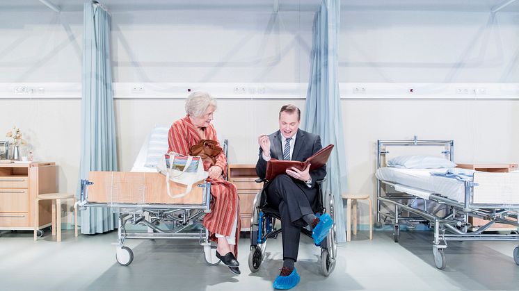 Är det roligt med vårdkriser, besparingar, underbemanning, stress, felbehandlingar och personalbrist? Nej, inte alls! Men det kan bli roligt om man låter ett äldre, förvirrat par – spelat av Ulla Skoog och Thomas Nystedt – hamna mitt i allt detta, en vanlig dag, på en vanlig sjukvårdsavdelning på en ovanligt rörig lördag när dessutom datasystemet är ur funktion. Premiär 9 december på Stora Scen.