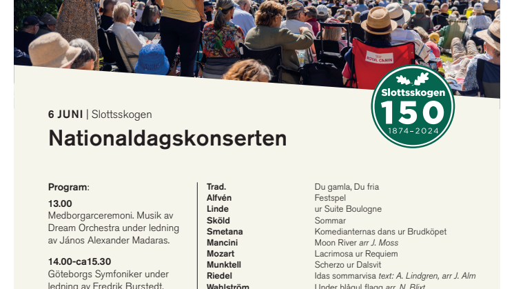 Göteborgs Symfoniker, Göteborgs Symfoniska Kör och dirigent Fredrik Burstedt bjuder på en somrig hitkavalkad på den stora ängen vid Björngårdsvillan. Programmet rymmer toner från både film och musikal, allsång och klassiska mästerverk. Missa inte Helena Munktells medryckande dalasvit, rörande körstycken av Stenhammar och Mozart eller den välkända Jernbanegaloppen från På Spåret! Och vad vore en junidag utan Idas sommarvisa av Georg Riedel?