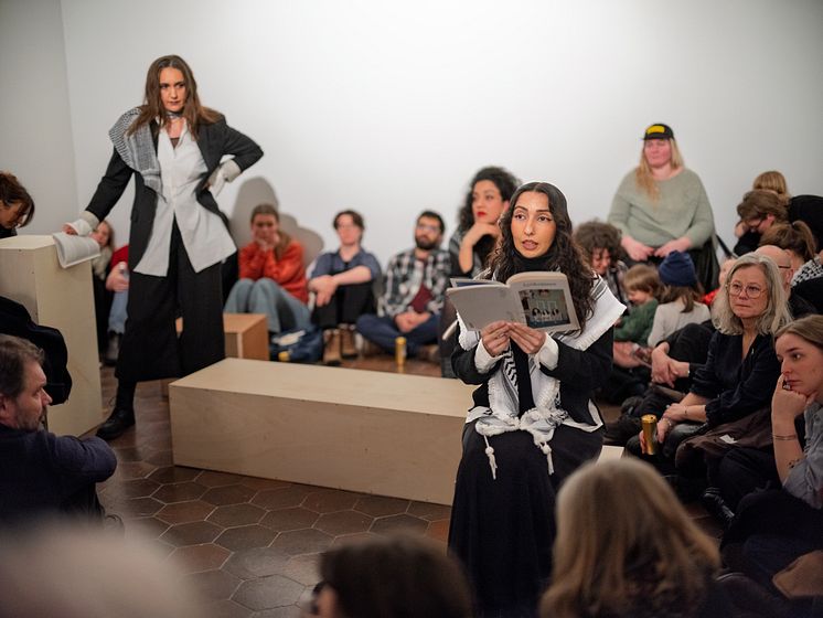 Poeterna i BAM (Burcu Sahin, Athena Farrokhzad, Merima Dizdarević) framför ett karnevalistiskt svar på Tidöavtalet.