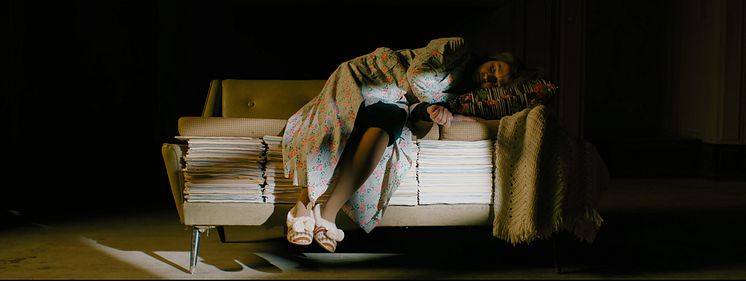 Stillbild ur videoverket Familiar Phantoms av Larissa Sansour och Søren Lind, 2023. Verket visas i utställningen Indigo är sorgens färg på Göteborgs Konsthall.