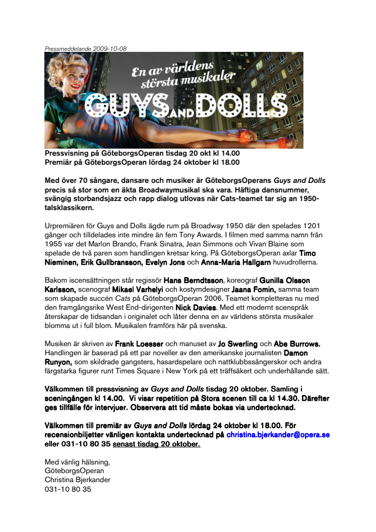 Guys and Dolls - pressvisning och premiär på GöteborgsOperan