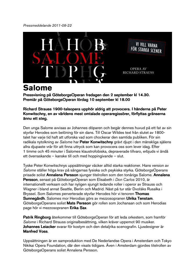 Pressvisning på GöteborgsOperan fredagen den 2 september kl 14.30.