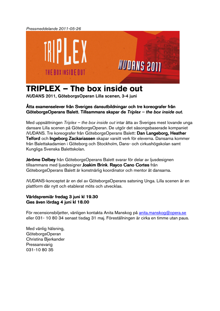 NUDANS 2011, GöteborgsOperan Lilla scenen, 3-4 juni